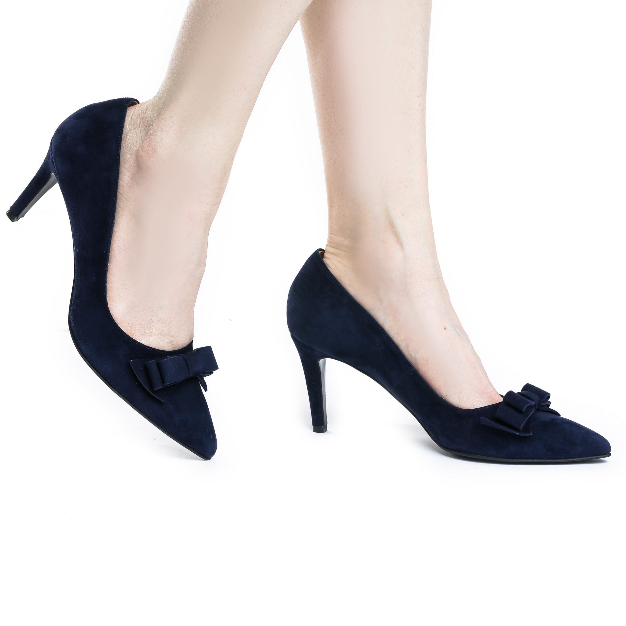 Pantofi de dama stiletto confectionati din piele naturala velur bleumarin.