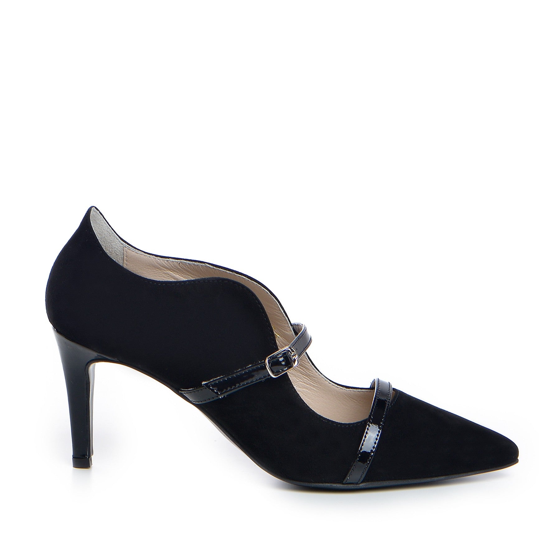 Pantofi dama Guban model 1355 piele velur negru/lac negru