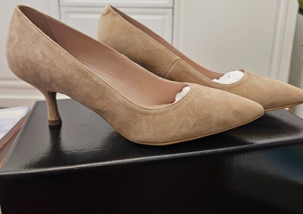 Pantofi de dama stiletto confectionati din piele naturala velur bej.