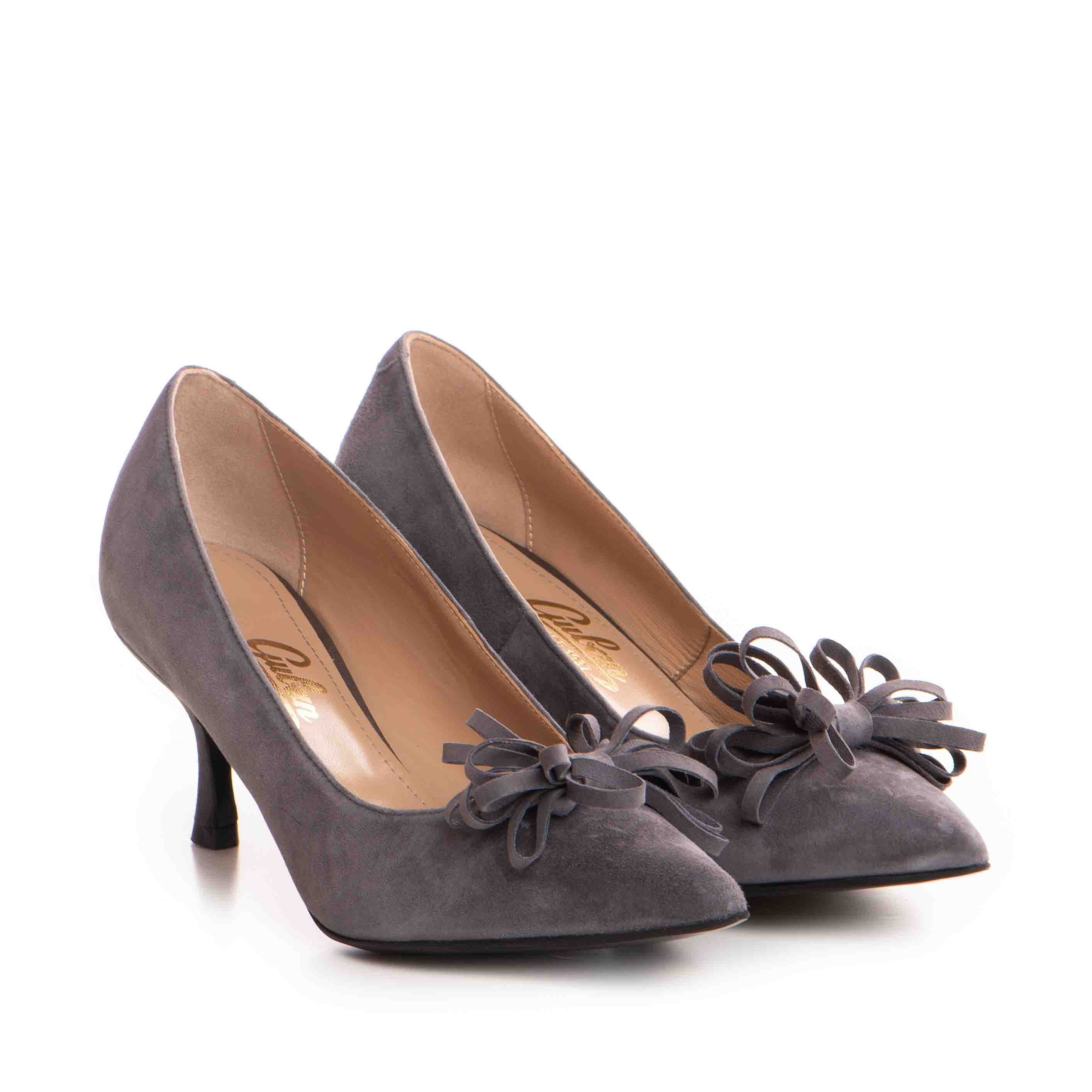 Pantofi de dama stiletto confectionati din piele naturala velur verde gri.