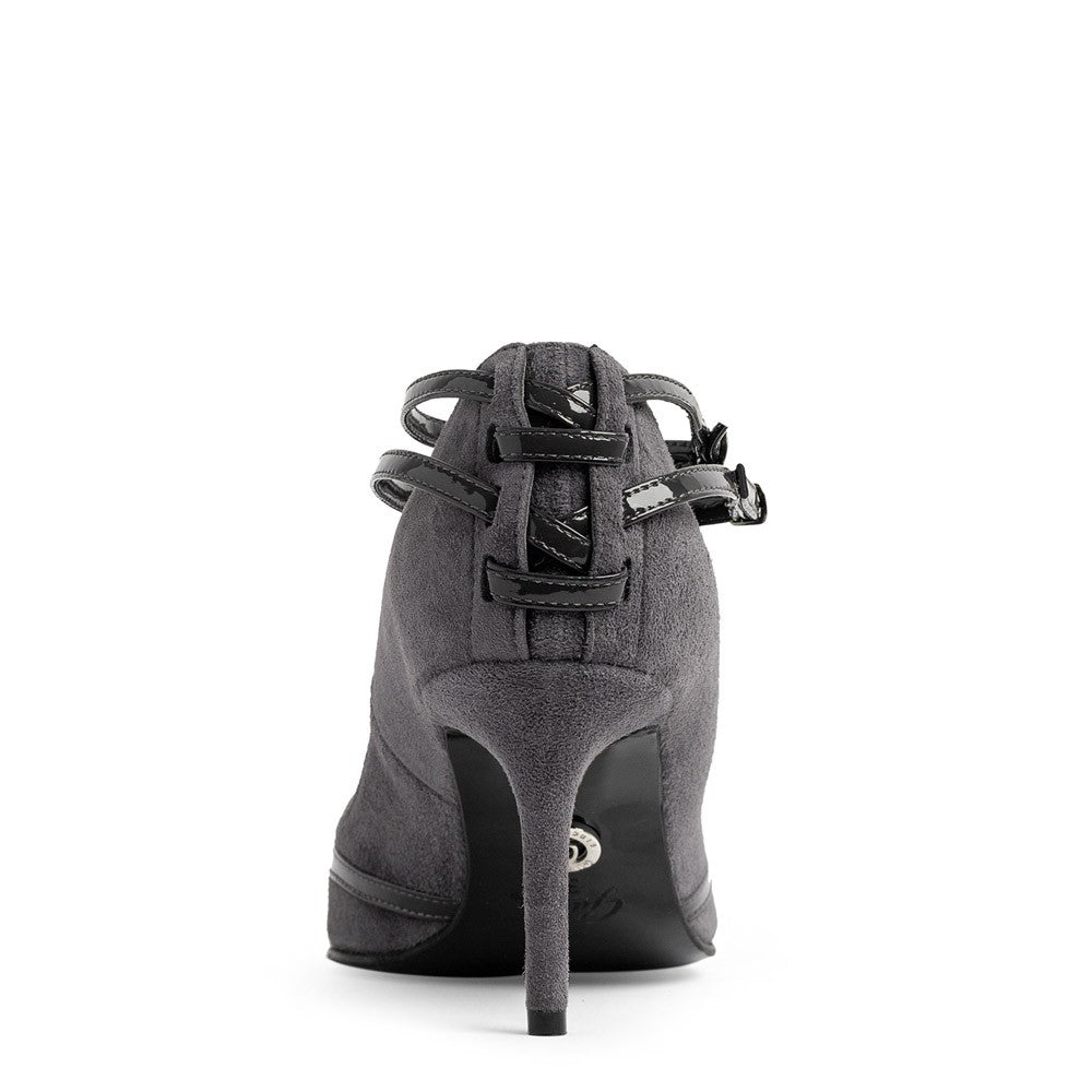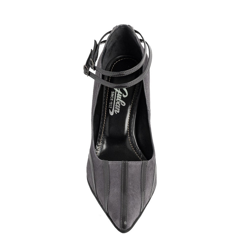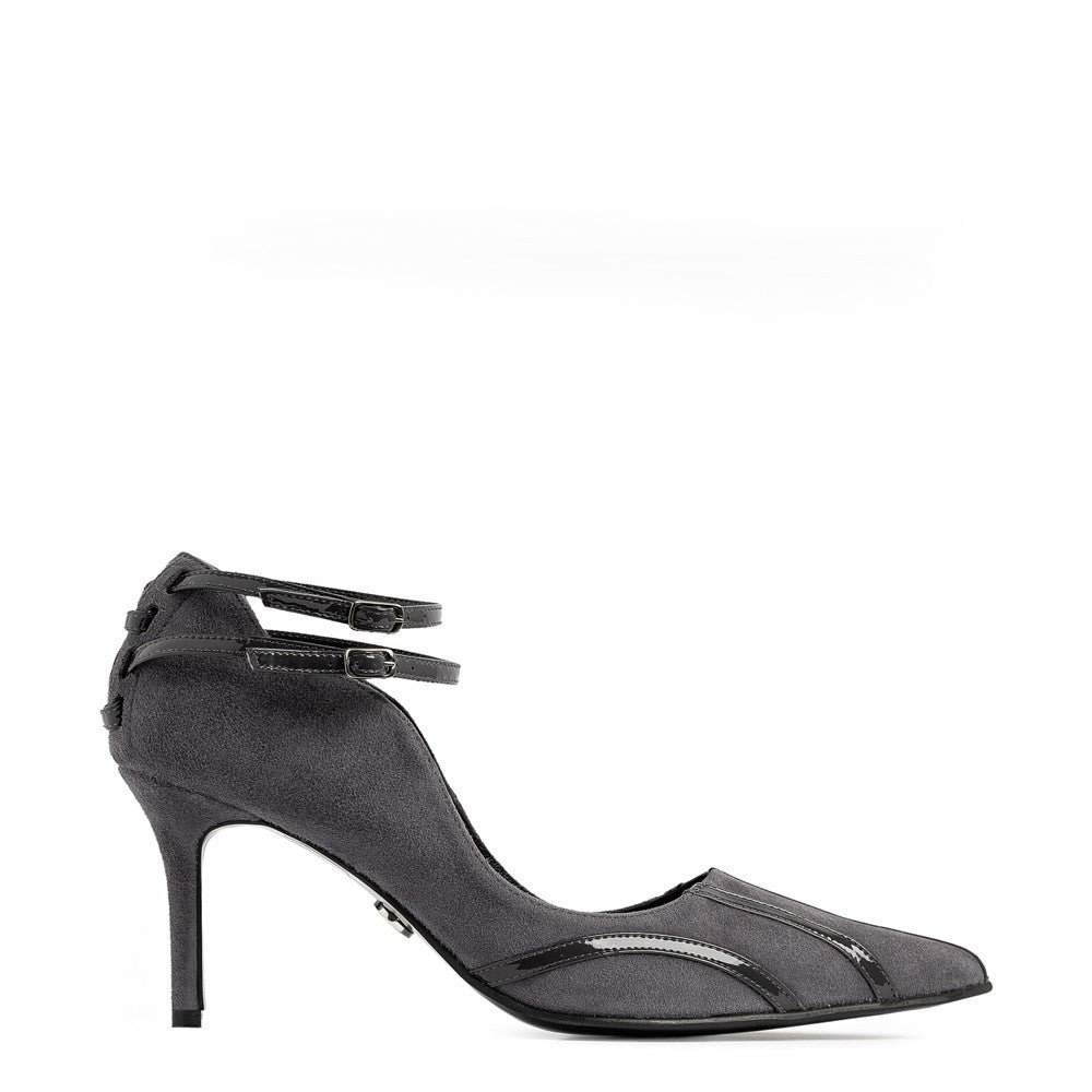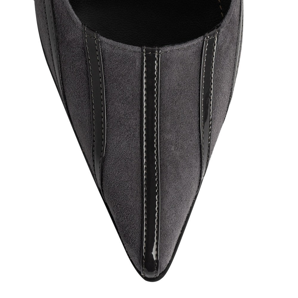 Pantofi dama stiletto confectionati din piele naturala velur gri combinat cu lac gri.