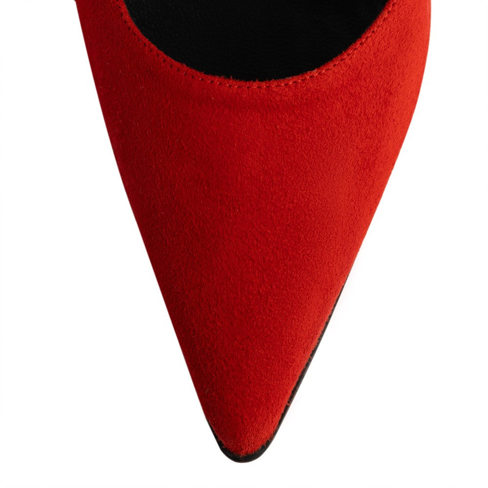 Pantofi dama stiletto confectionati din piele naturala velur rosu.