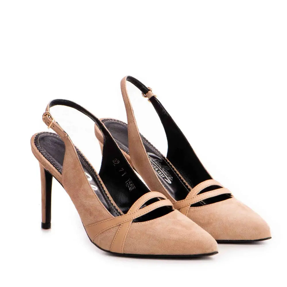Pantofi dama Guban model 1558 velur bej/nappa camel