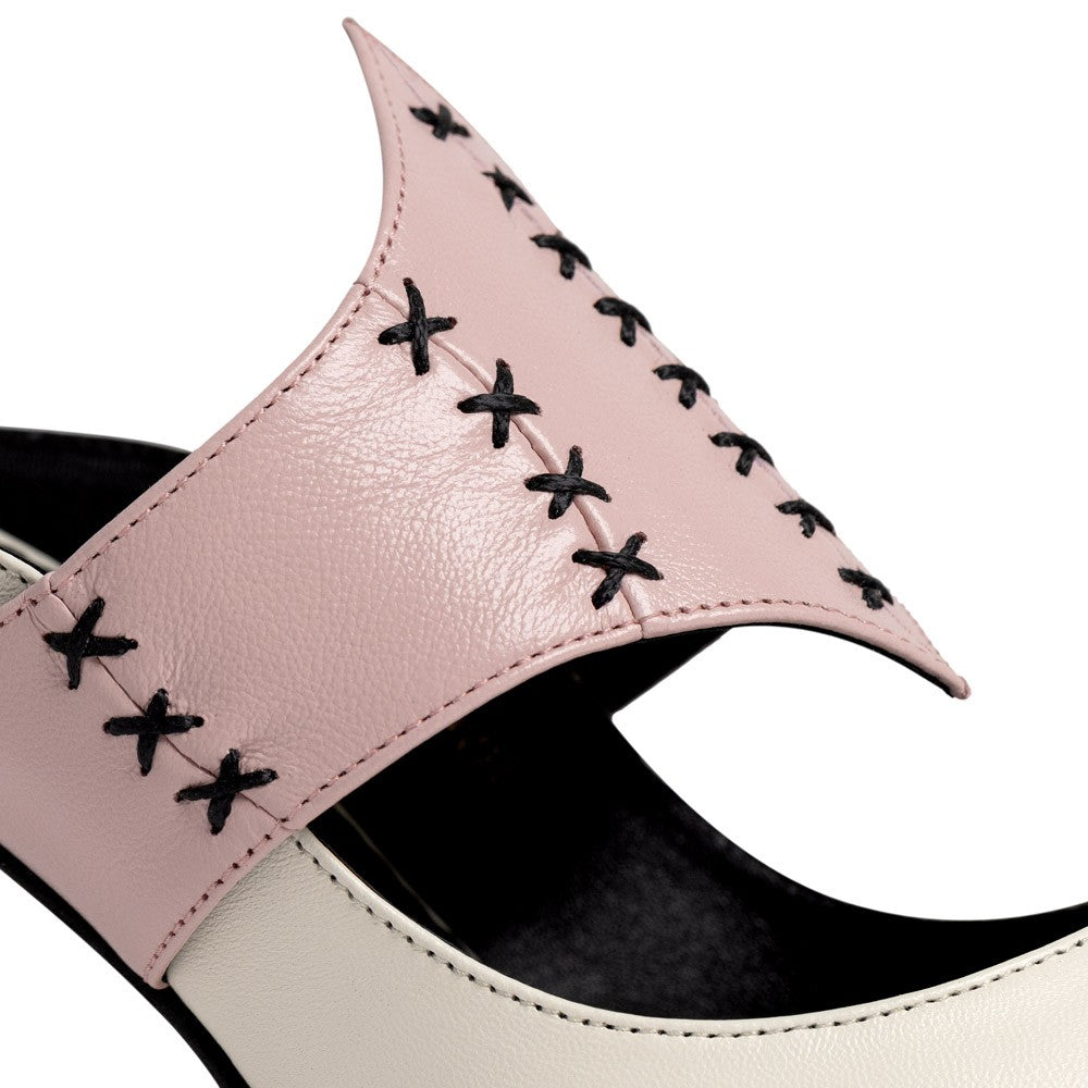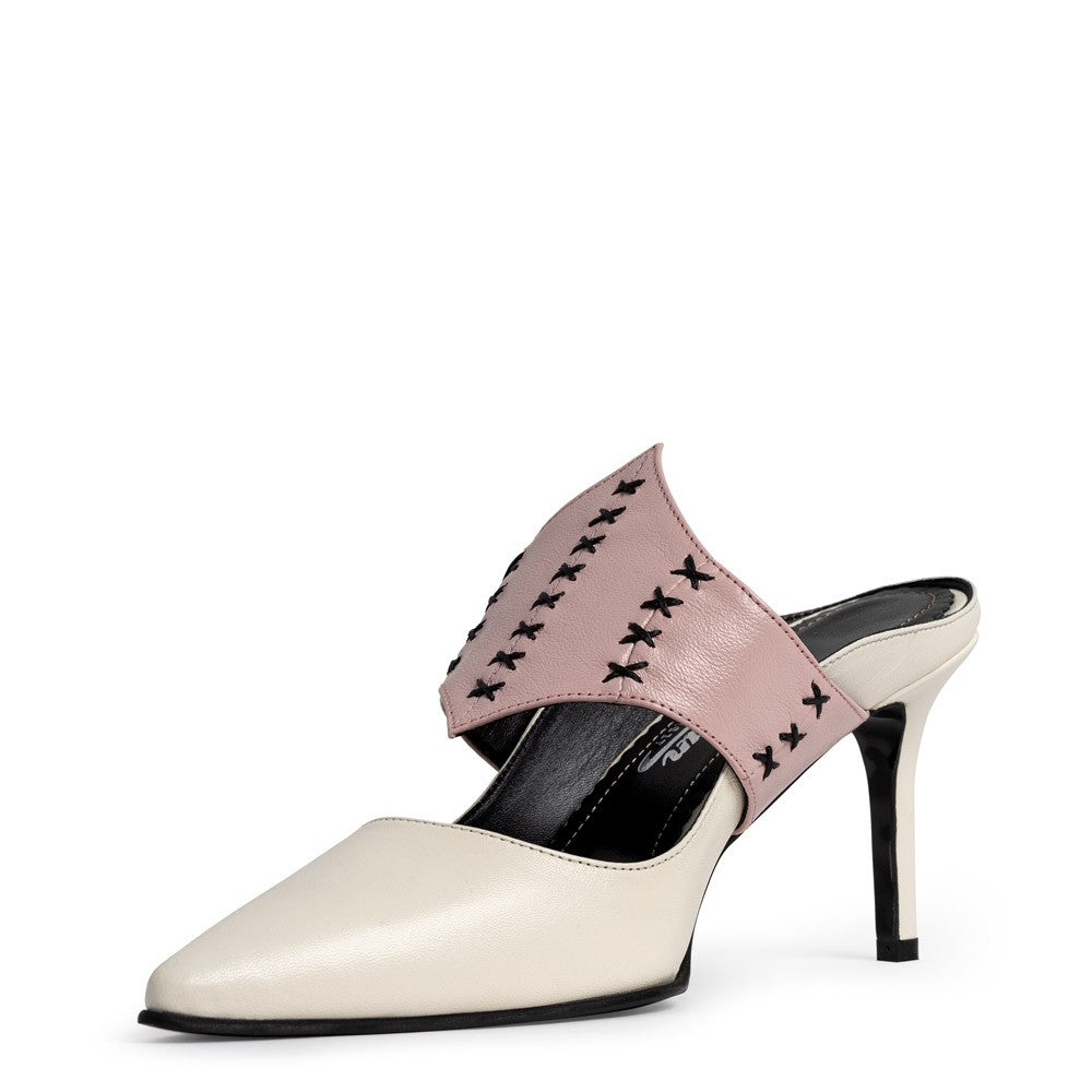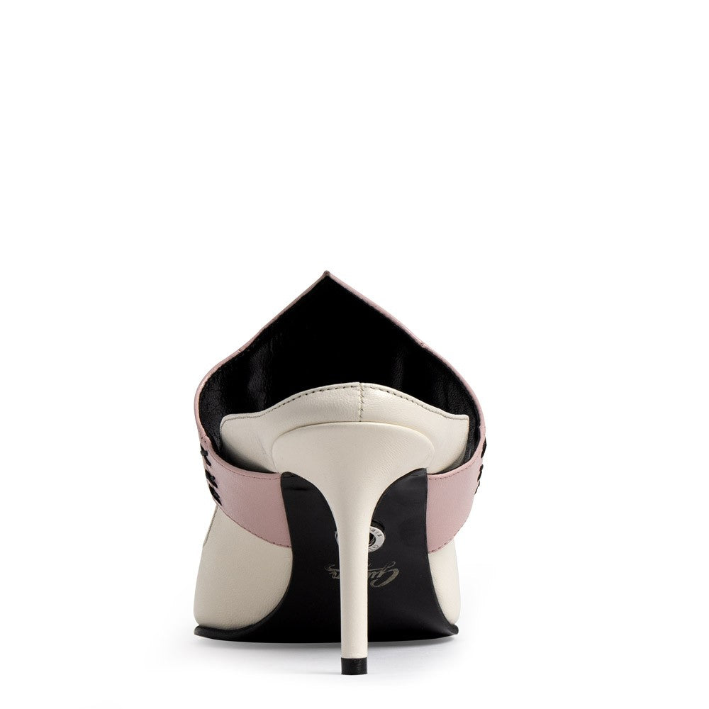 Pantofi dama stiletto confectionati din piele naturala nappa crem combinat cu nappa roz.