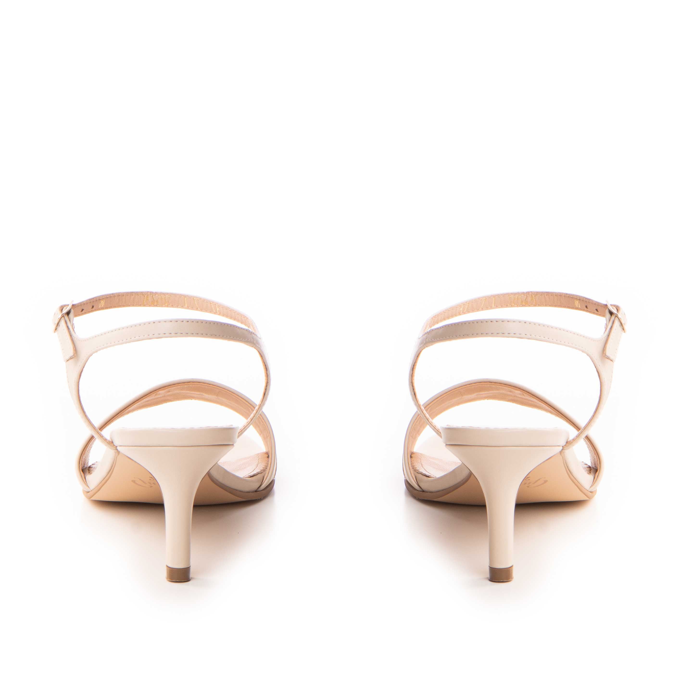 Sandale dama confectionate din piele naturala nappa bej combinat cu lac croco bej.